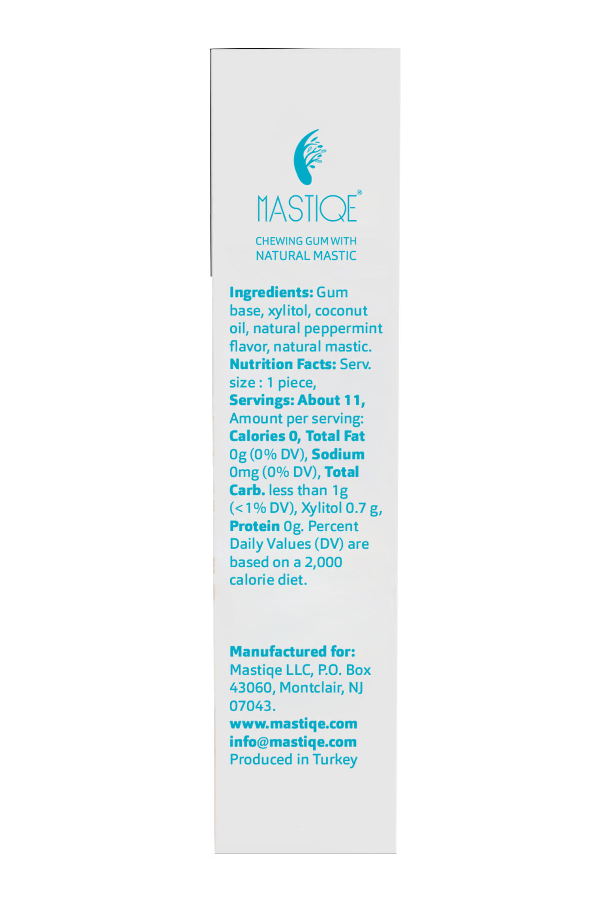 Mastic provides Mastiqe a unique fun-to-chew consistency and flavor. Breath freshening, very subtly sweet, and far more robust than other gum, Mastiqe is ideal for long-lasting chews and relationships.